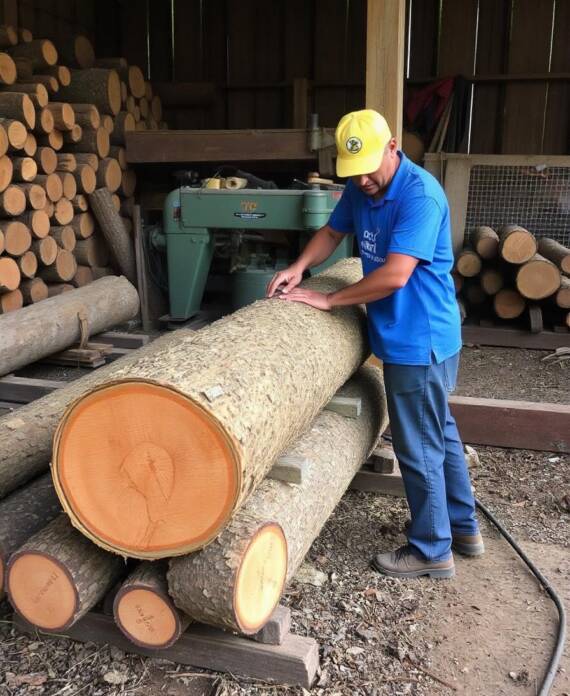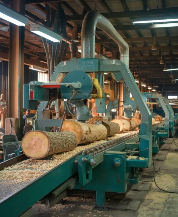 Use the sawmill machine to convert logs into rough-sawn timber.